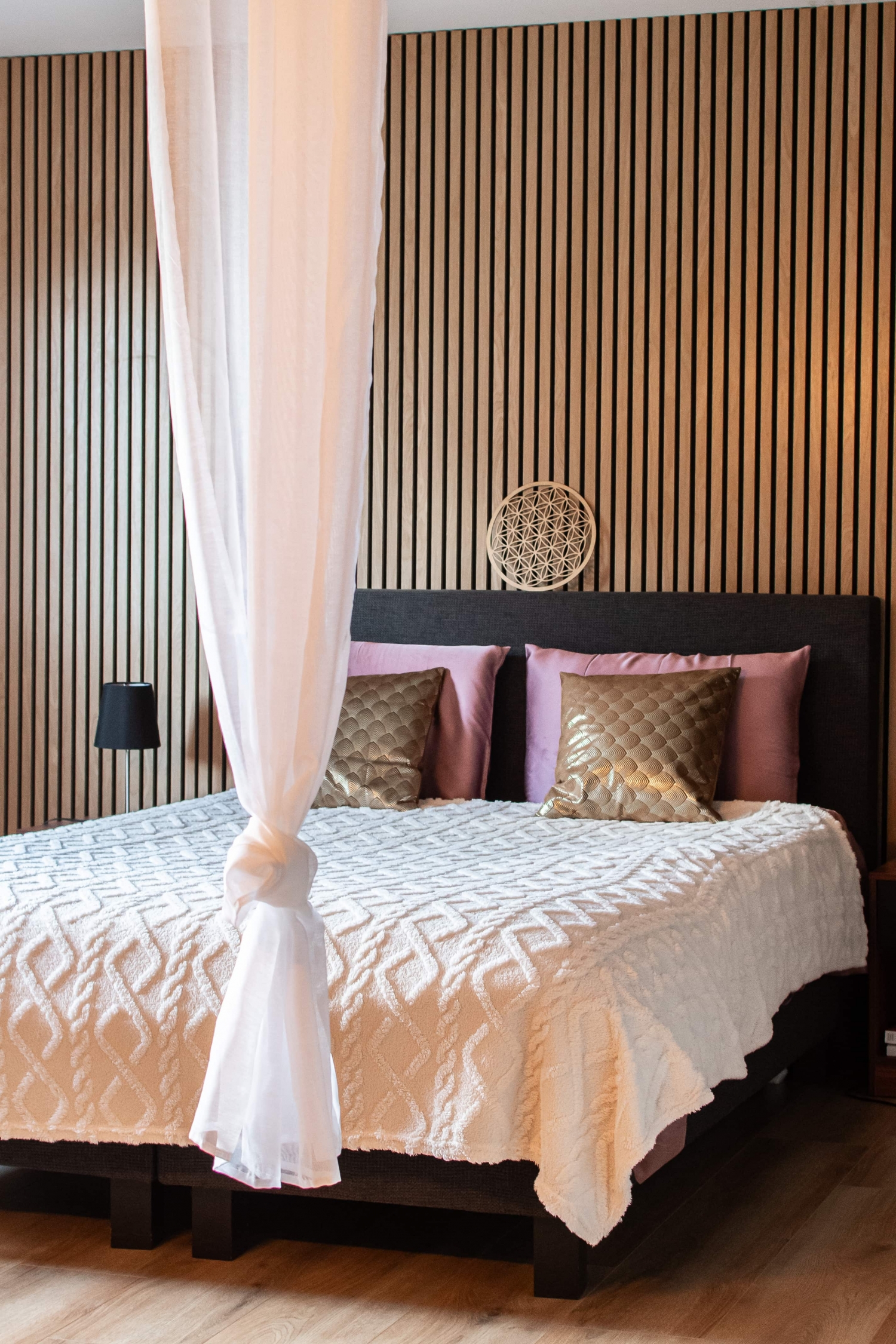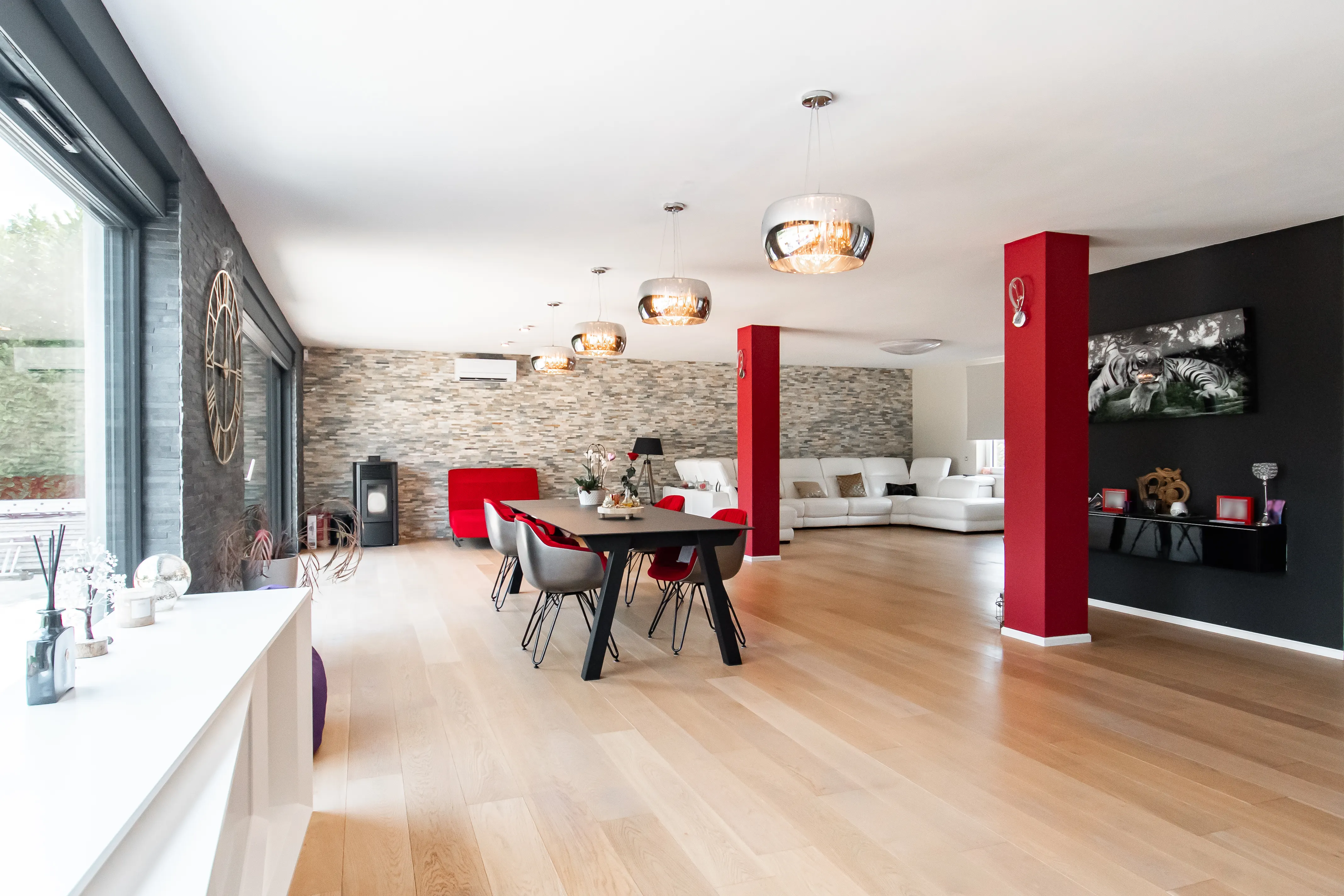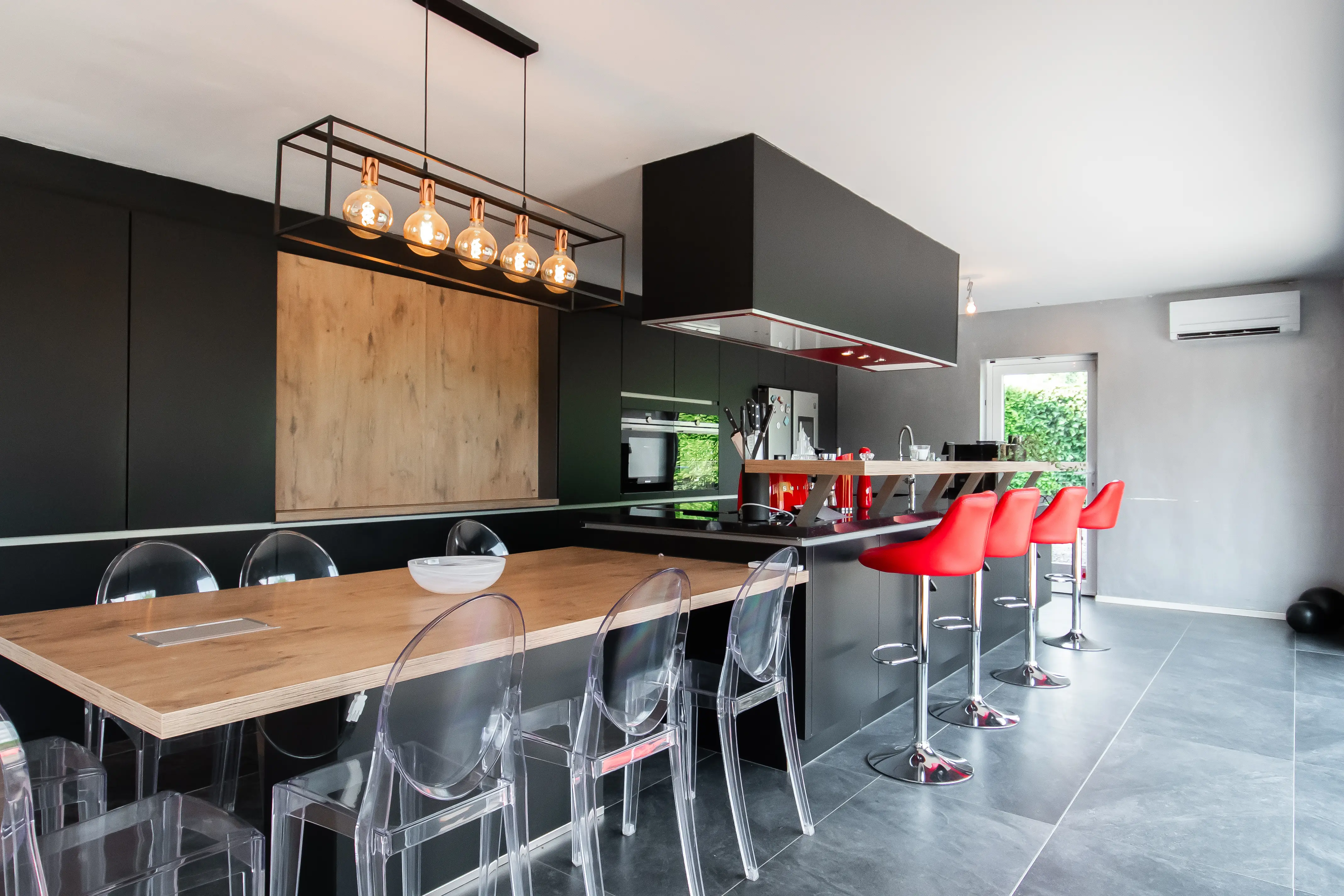La villa célèbre les matériaux bruts : bois, pierres naturelles, textures vivantes et chaleureuses.Chaque choix raconte un retour à l’essentiel, une volonté d’ancrer la maison dans son environnement.On y sent la chaleur du bâti, la présence de la terre.